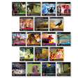 Print Posters: 12 x 12 inches. Coated cardstock. 18 posters.