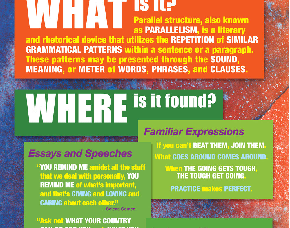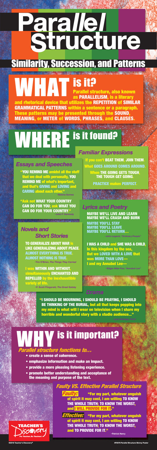 Exemplifies the What, Where, and Why of parallel structure in writing.