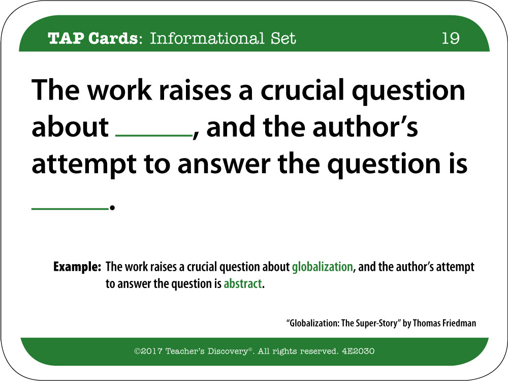 TAP Cards Press Your Students to Engage Deeply with Informational Text