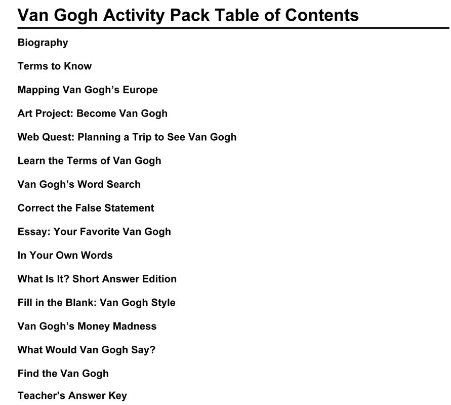 Vincent Van Gogh Activity Packet Download - Vincent Van Gogh Activity Pack Download is backordered and will ship as soon as it is back in stock.