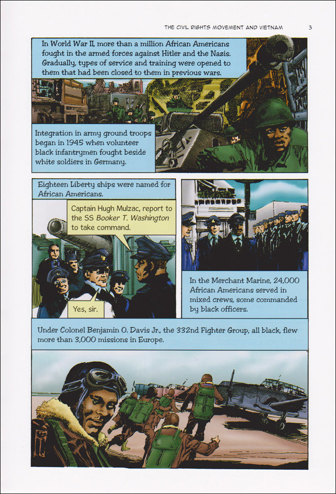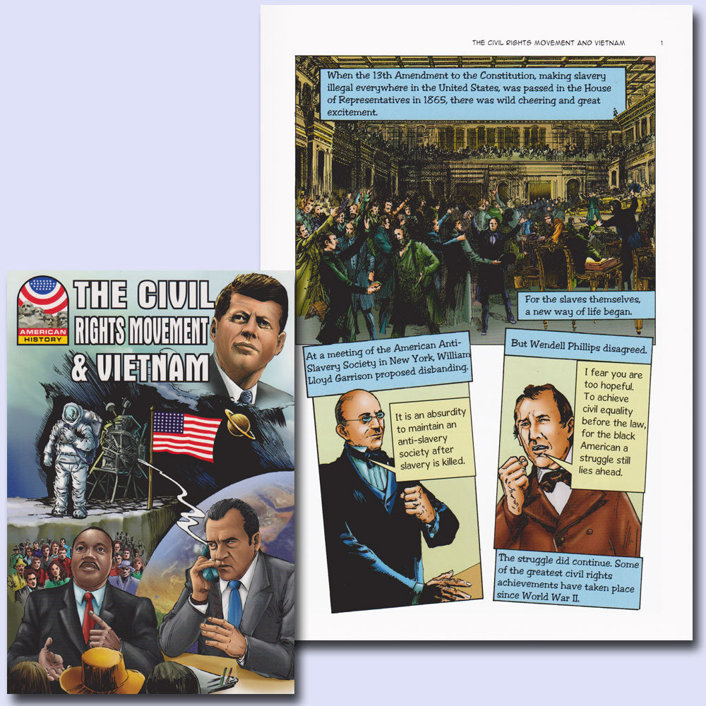 History is a story. See it brought to life in this graphic narrative beginning with the desegregation of schools in Little Rock, Arkansas, and spanning across the bus boycotts, the continued threat of Communism, and the resulting Vietnam War. Your students will experience the period through realistic renderings of famous historical figures, including President Kennedy, Buzz Aldrin, and Dr. Martin Luther King, Jr. Natural dialogue along with narrative text provides readers two simultaneous yet different perspectives of pivotal events in American history.
