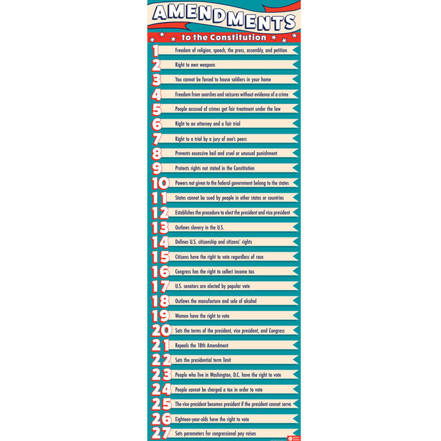 I was about to buy this, but my nit-picking habit of fact checking vetoed the plan. Am I splitting hairs? Perhaps, but if a question about trial by jury appears on our state exam, it will be a Sixth Amendment item, not Seventh Amendment. I went with three stars, because it's otherwise an attractive poster. It would look good in a classroom, but it won't get the chance in mine.