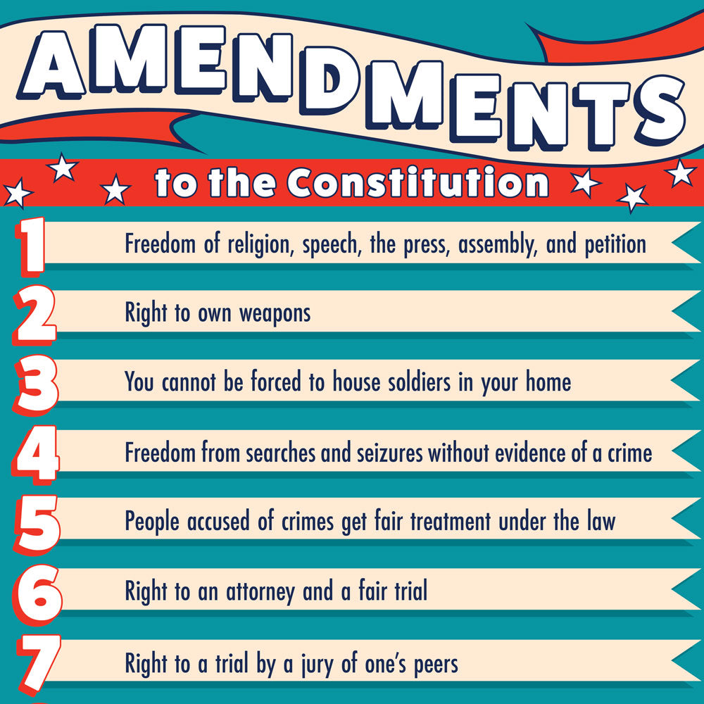 Display all 27 amendments to the U.S. Constitution, including the Bill of Rights!