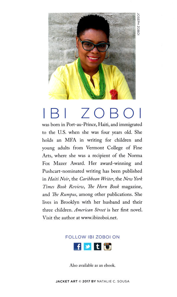 American Street is a gripping account of Fabiola Youssaint, a Haitian girl from Port-au-Prince who, on the corner of American Street and Joy Road, believed she would finally find une belle vie—a good life in the U.S. After leaving Haiti, Fabiola’s mother is detained by U.S. immigration, leaving Fabiola to deal with her loud American cousins, Chantal, Donna, and Princess. Living in Detroit’s west side, she comes to accept attending a new school and finding romance in an unexpected place. Just as she finds her footing in this strange new world, a dangerous proposition presents itself, and Fabiola soon realizes that freedom comes at a cost. Trapped at the crossroads of an impossible choice, will she pay the price for the American dream? Zoboi’s powerful coming-of-age story draws on her own experience as a young Haitian immigrant, infusing this lyrical exploration of America with magical realism and vodou culture.