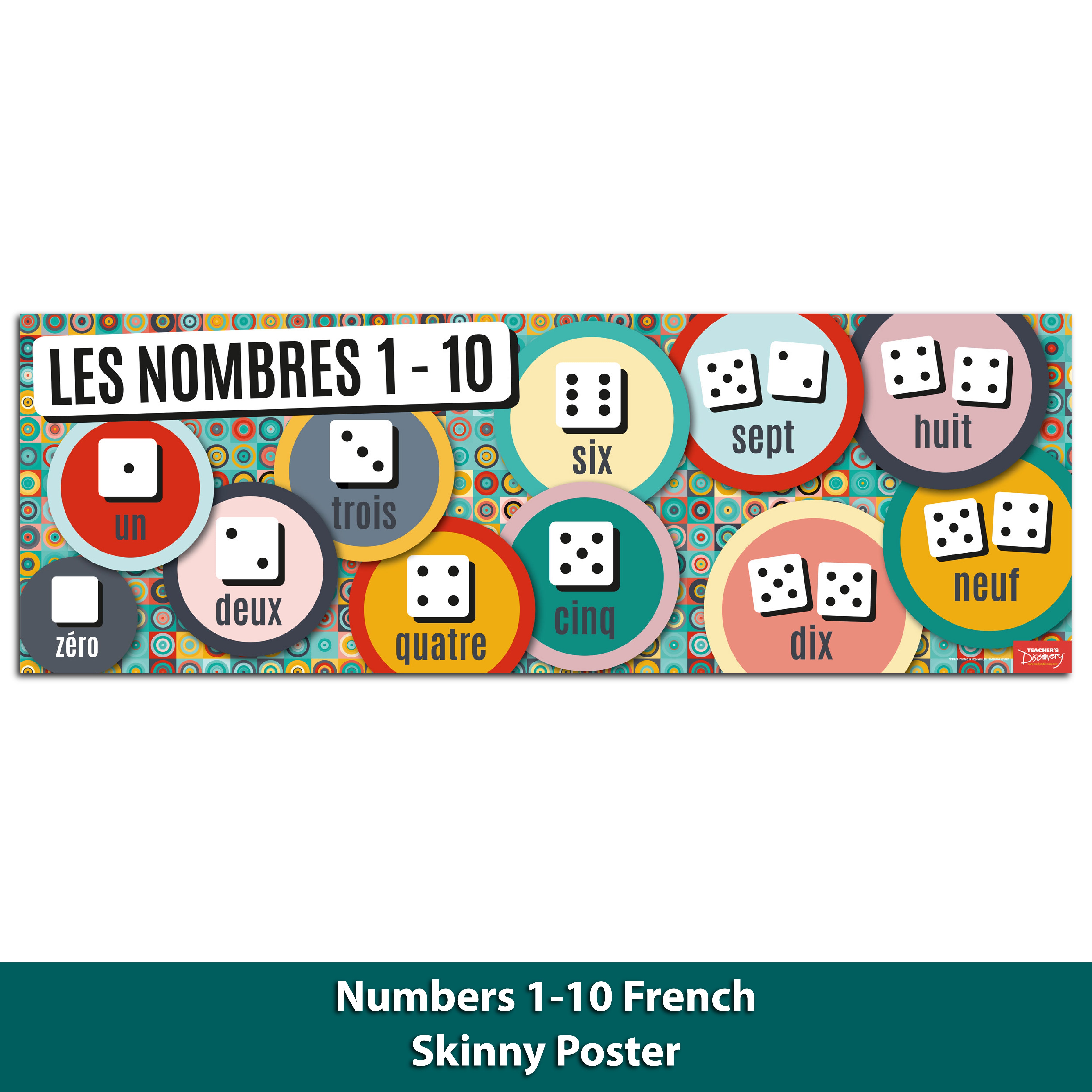 Stop counting on numerals and connect French number words directly to quantities. 13 x 38 inches. Laminated.