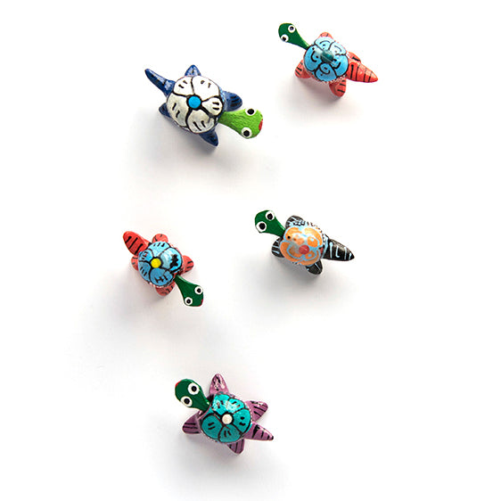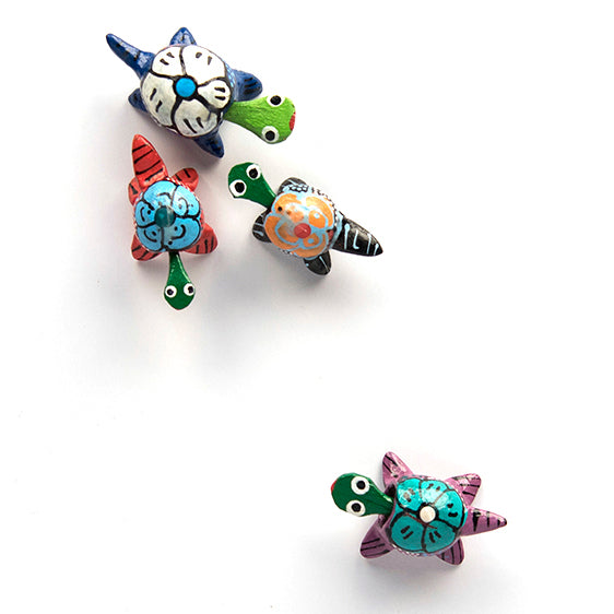 These bobblehead turtles are carved from the pits of tropical fruit and hand-painted in Mexico.