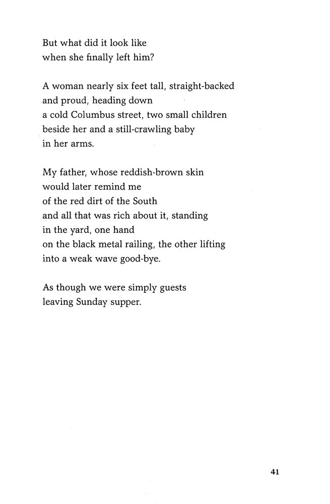 In her poems, Woodson shares her experiences growing up as an African American during the 1960s and 1970s in South Carolina and New York. Her poems express her life with the remnants of Jim Crow laws and her budding awareness of the Civil Rights movement.