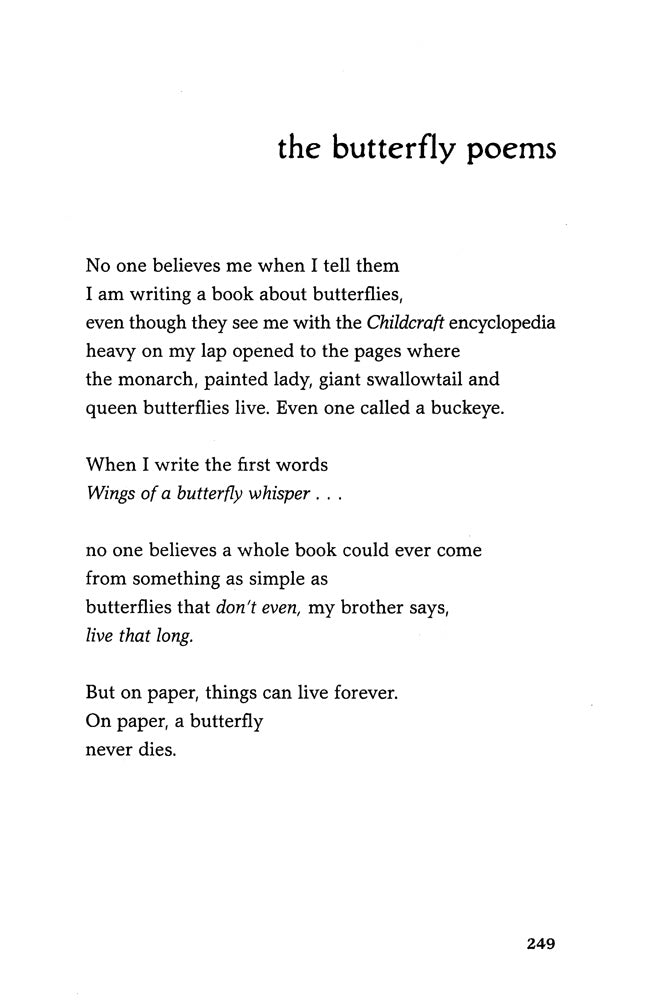 Her poems also reflect the happiness she found in writing after struggling to read as a child. Each line is accessible and moving as the reader gets a glimpse of Woodson’s childhood quest to find a place in the world.