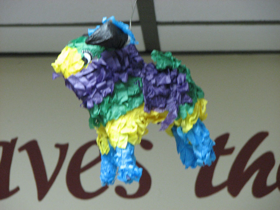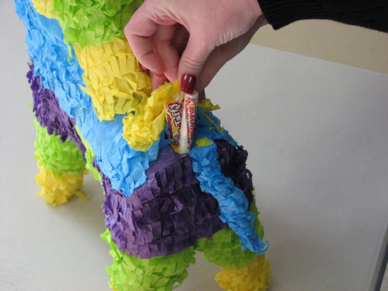Fill by opening flap on back. Made in Mexico. 18 inches tall and 16 inches long. Comes with metal hook for hanging. Individually crafted; colors and styles may vary.