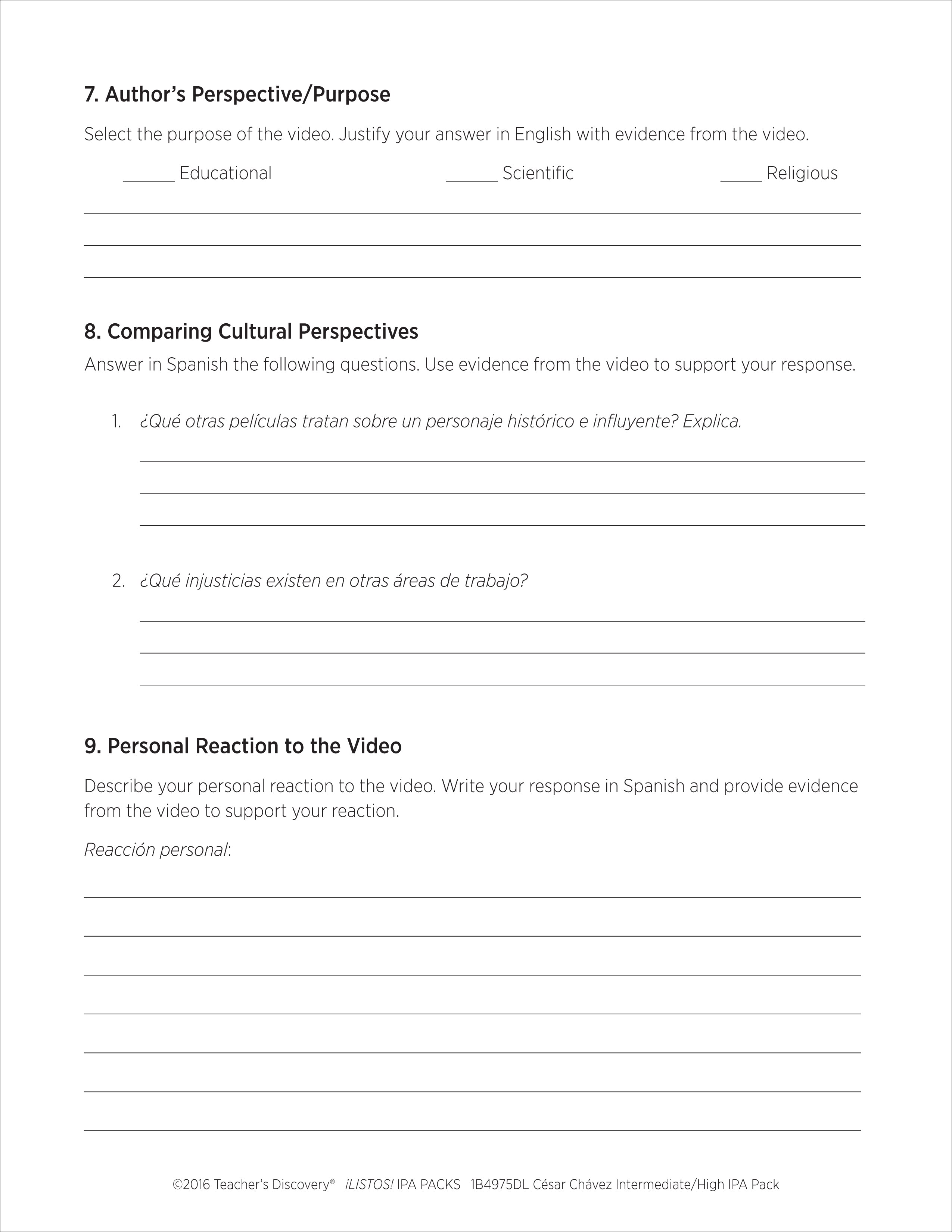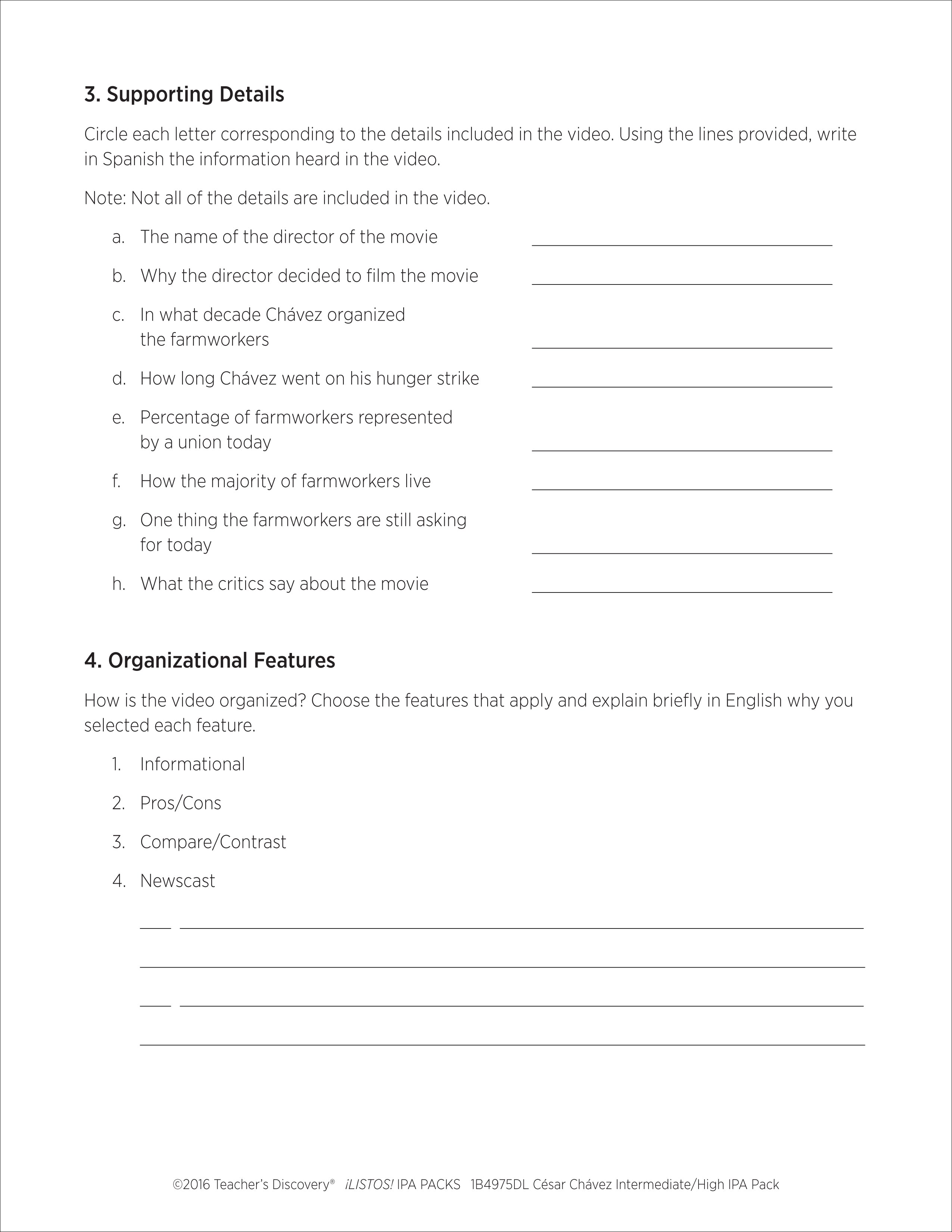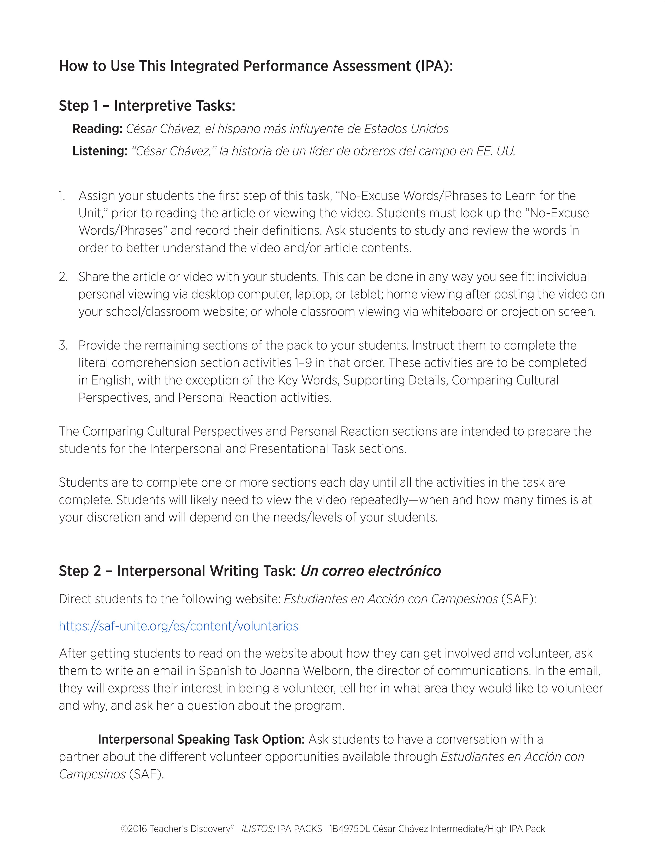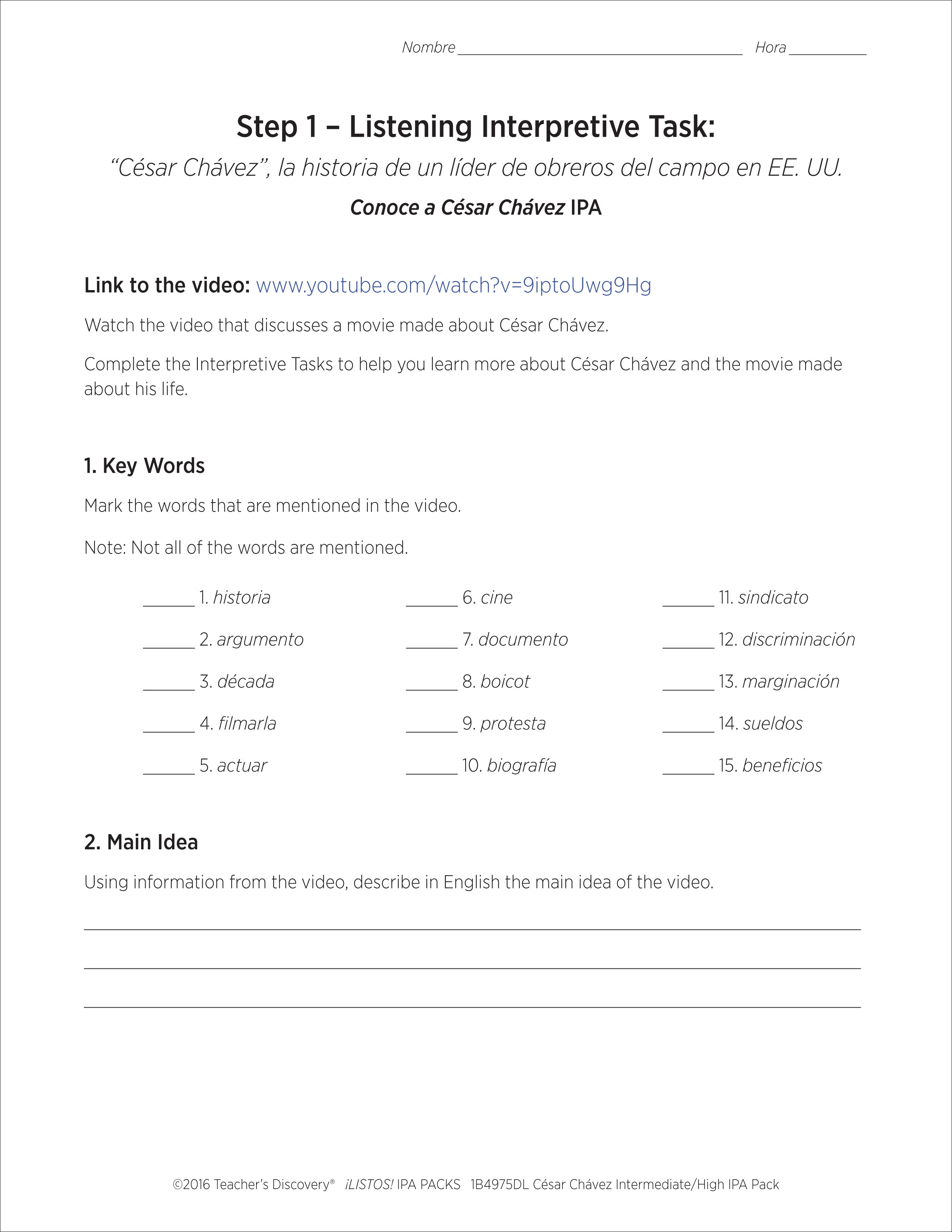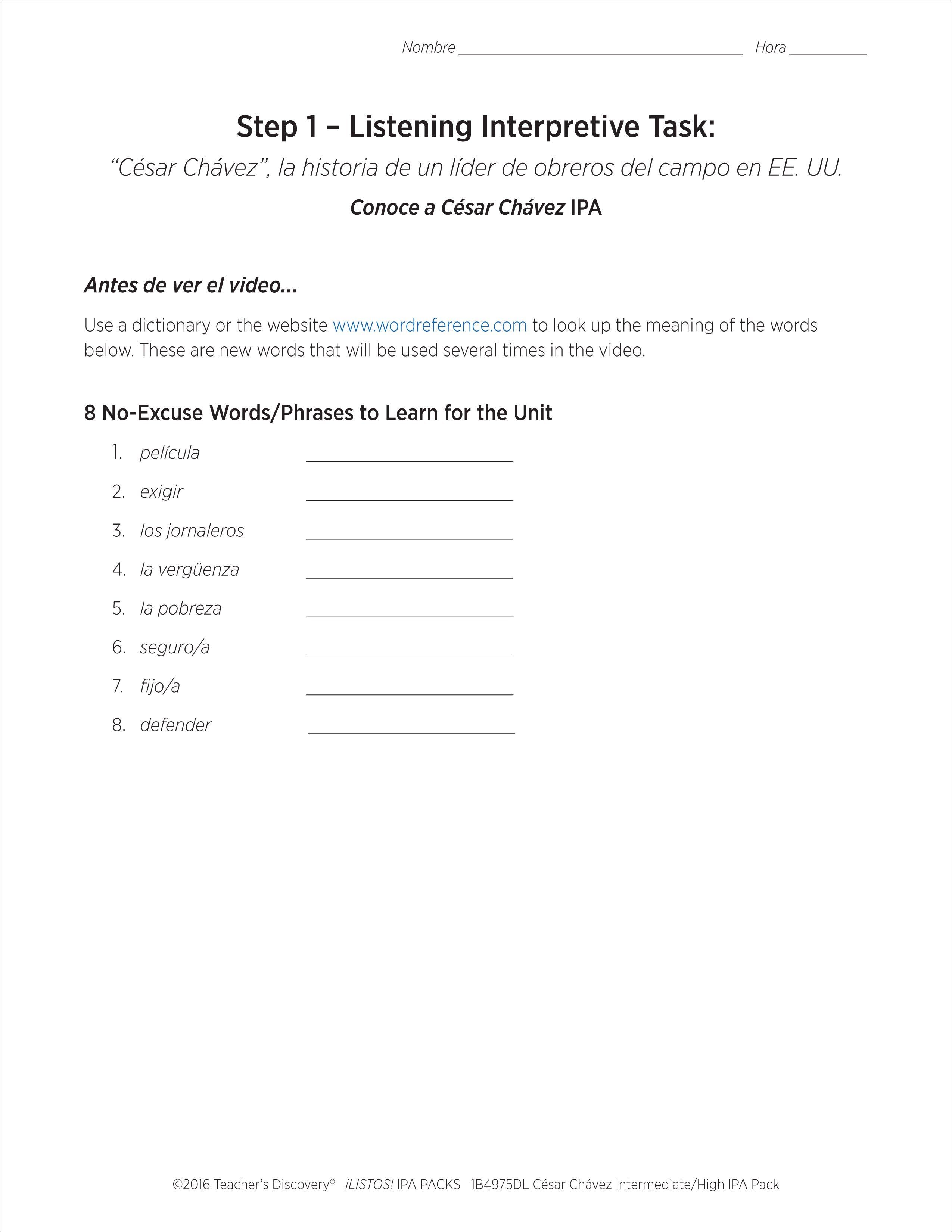 This ¡LISTOS! IPA Pack download is based on two authentic resources: an article and a three-minute news report video segment that discusses a movie being made about César Chávez in 100% Spanish.