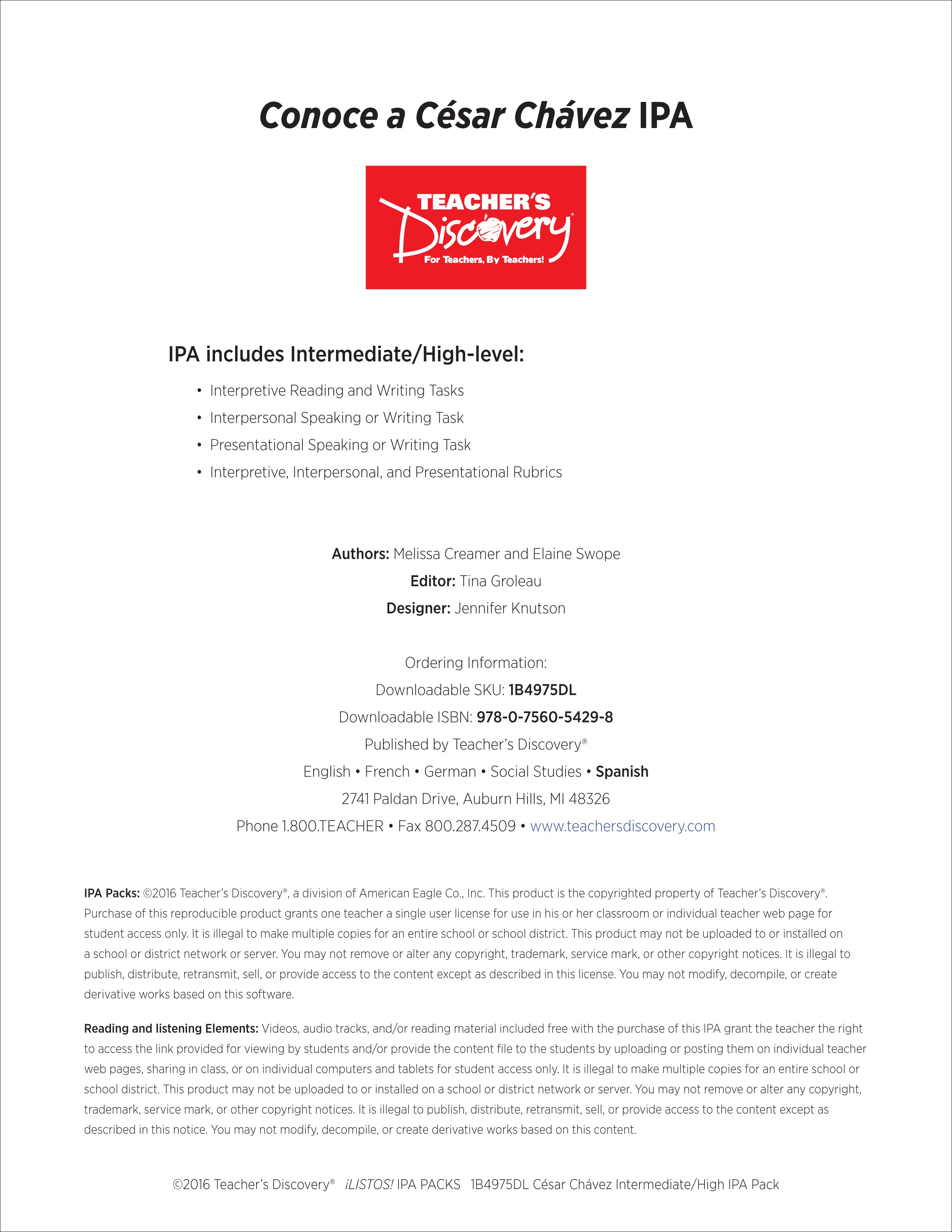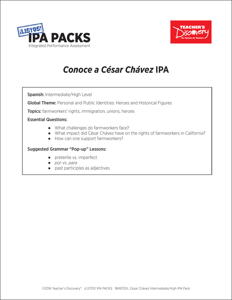 Cesar Chavez Intermediate-High Spanish IPA Pack - DIGITAL RESOURCE DOWNLOAD is backordered and will ship as soon as it is back in stock.