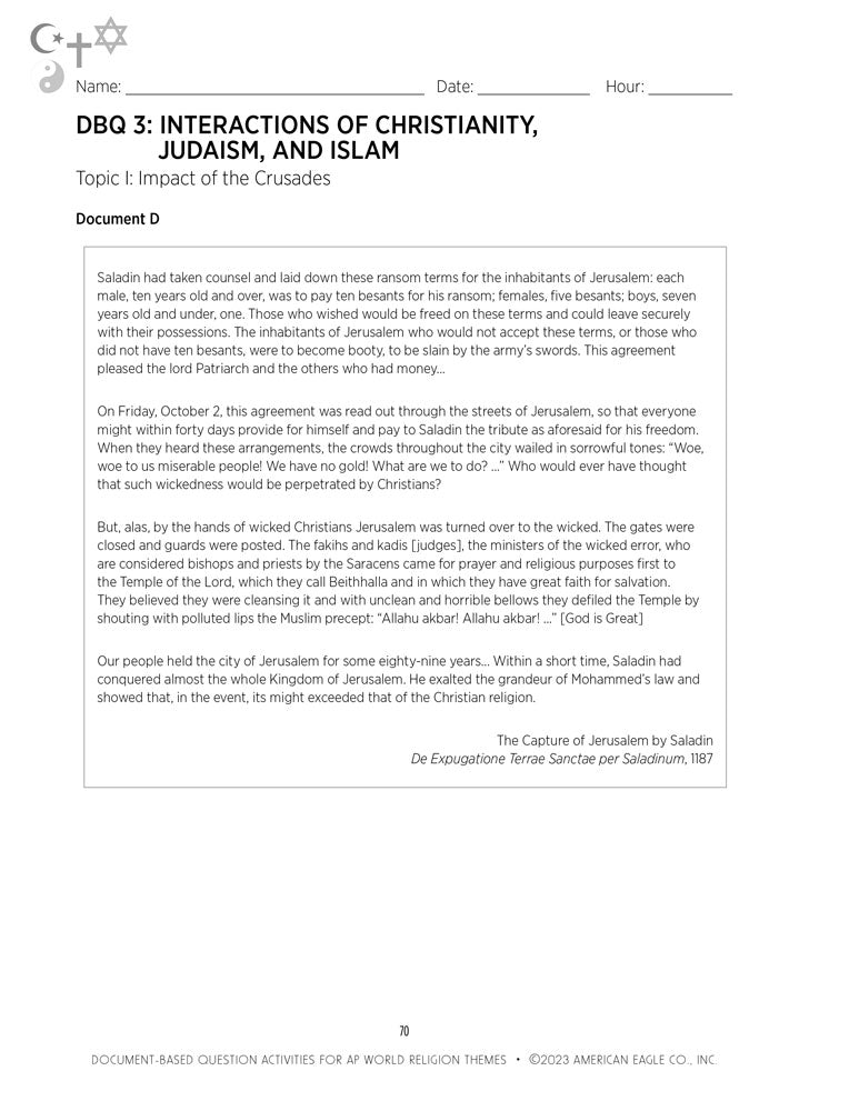 Teach world religions through the lens of historical documents! In each of the 12 document-based questions, students analyze primary and secondary sources to make valuable connections between history, current events, and world religions.