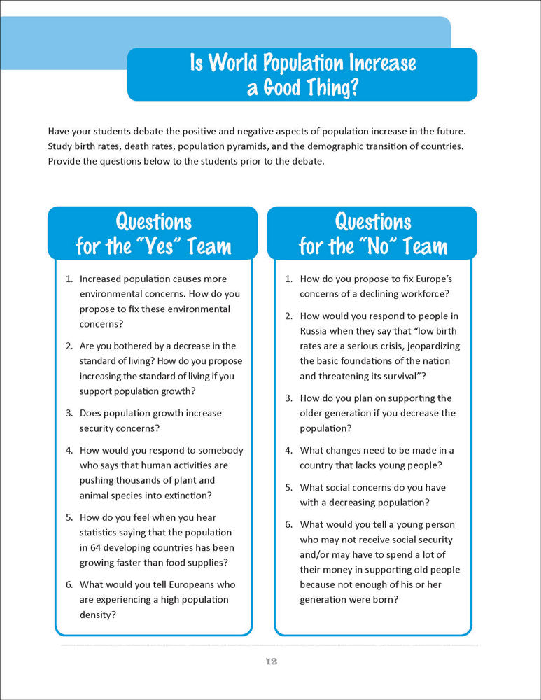Topics range across subjects such as: political and economic systems, climate, geography, cartography, and much more. Of course, debates are not limited to the topics in this book—once you have the format down, you can create your own debate subjects!