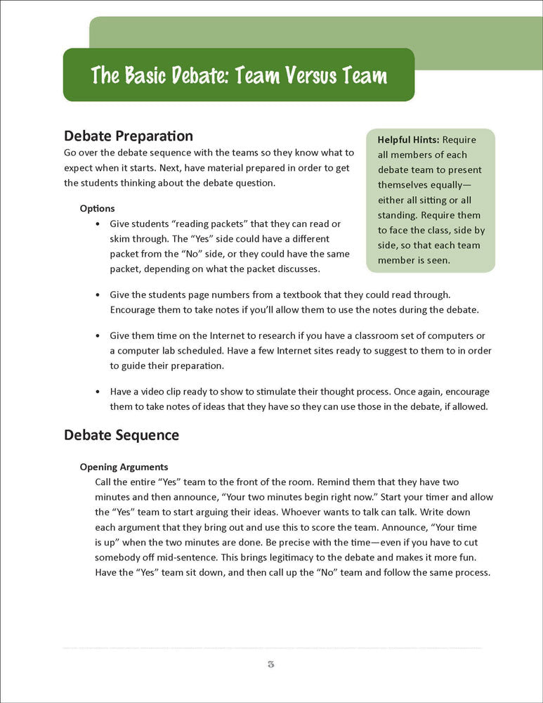 Enclosed you will find ready-to-use debate lessons for your students, as well as different debating styles, a scoring rubric, and ideas on how to expand and extend each debate. Follow-up questions are also included for each topic, to ensure that each student truly comes away from the debate with a well-rounded knowledge of the subject.