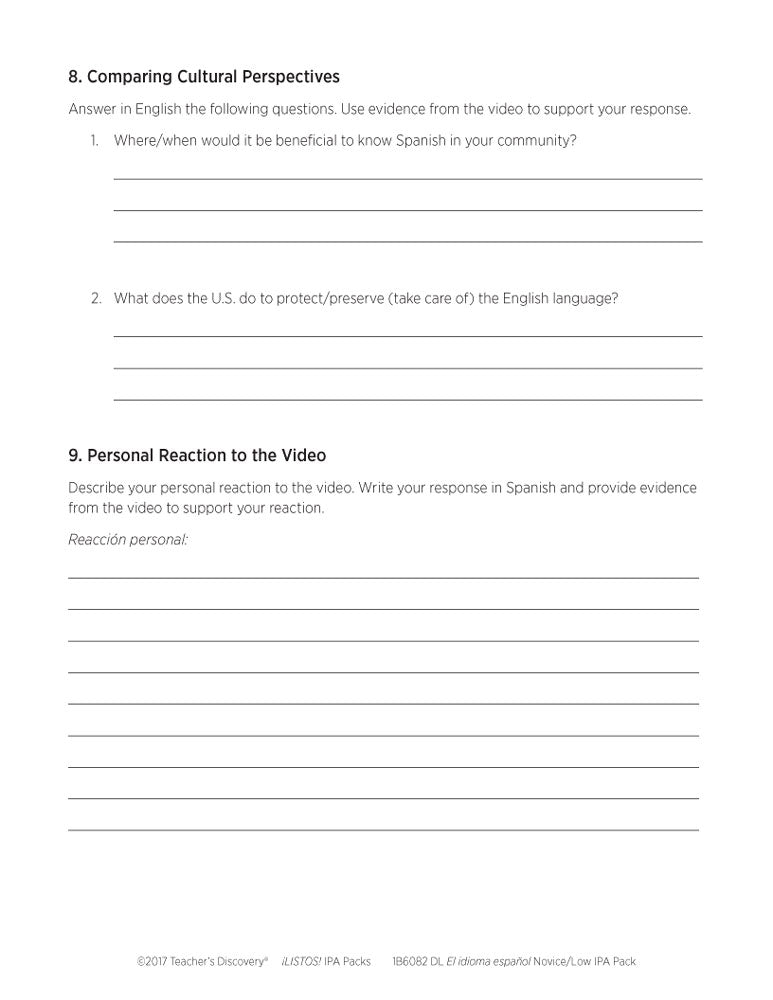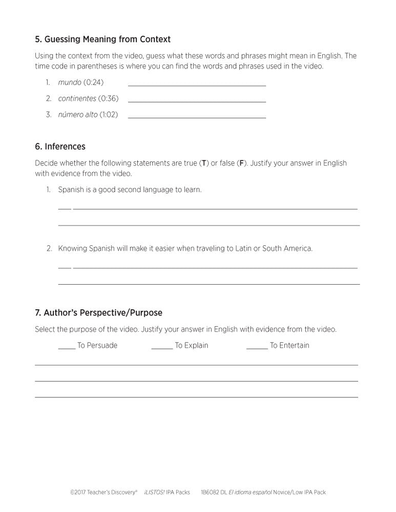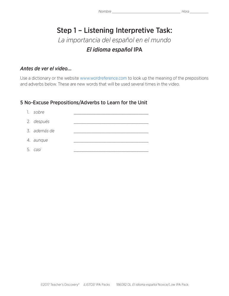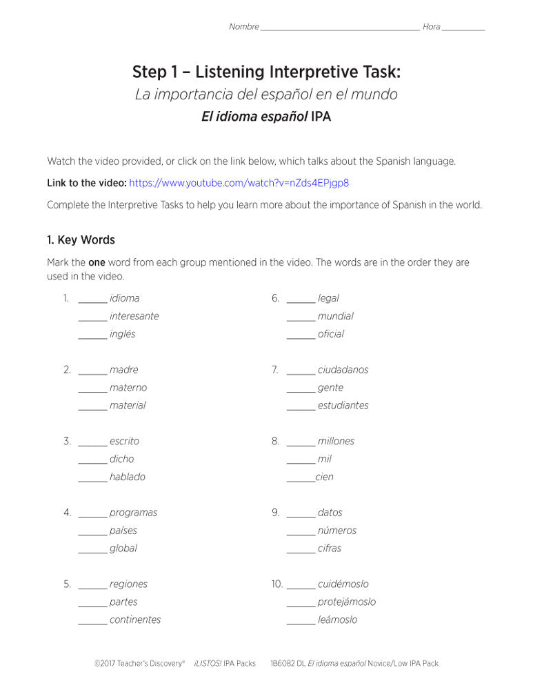 This ¡LISTOS! IPA Pack Download is based on two authentic resources: an infographic and a two-minute video describing the importance of the Spanish language in the world entirely in Spanish.