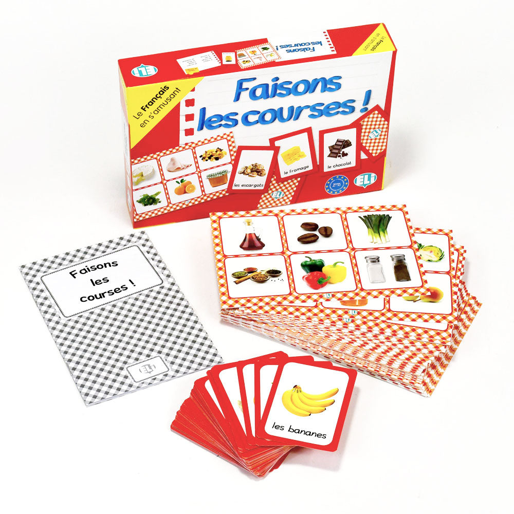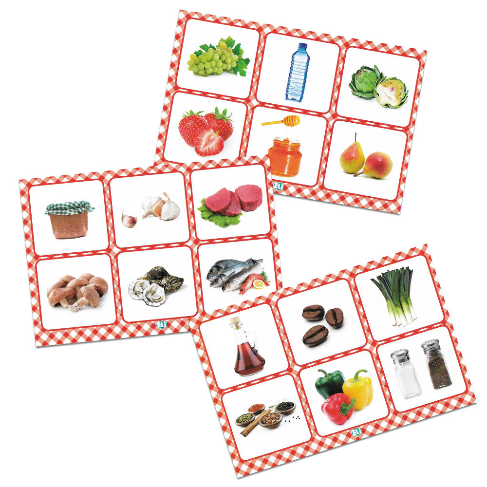In this game, players must try to be the first to collect all of the groceries on their list. The game can also be played like Bingo to learn and reinforce food and groceries. Includes a deck of 66 cards containing photographs of food and drink, 36 boards (shopping lists) that can also be used as Bingo cards, a game manual including the rules of the game, suggestions for additional activities, a gastronomic quiz, typical recipes, as well as idioms related to food.