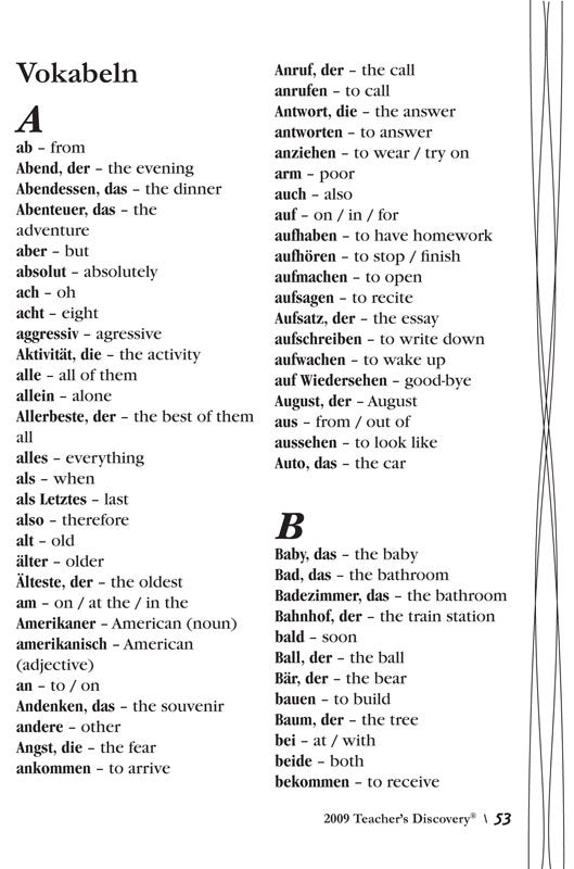 ©2011. German, English. Level 1. Elementary, middle school, high school. Reproducible. 52 pages.