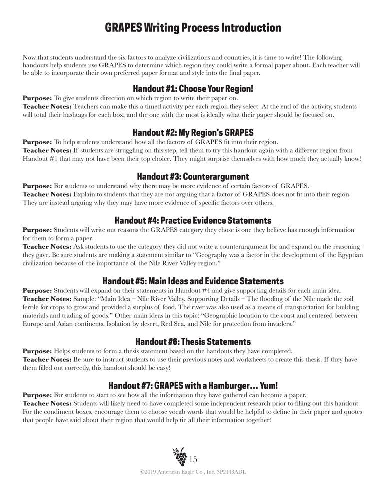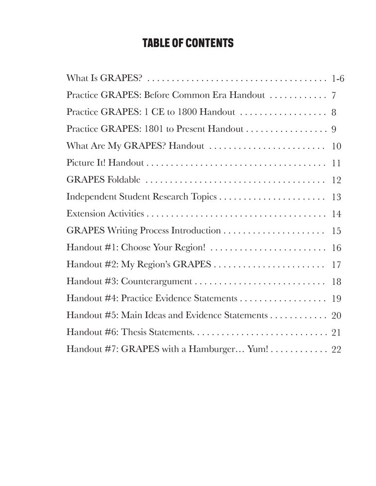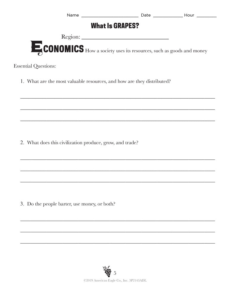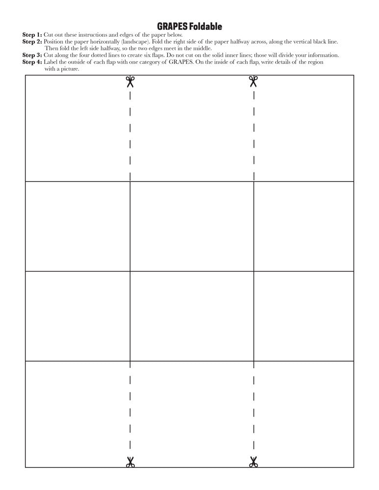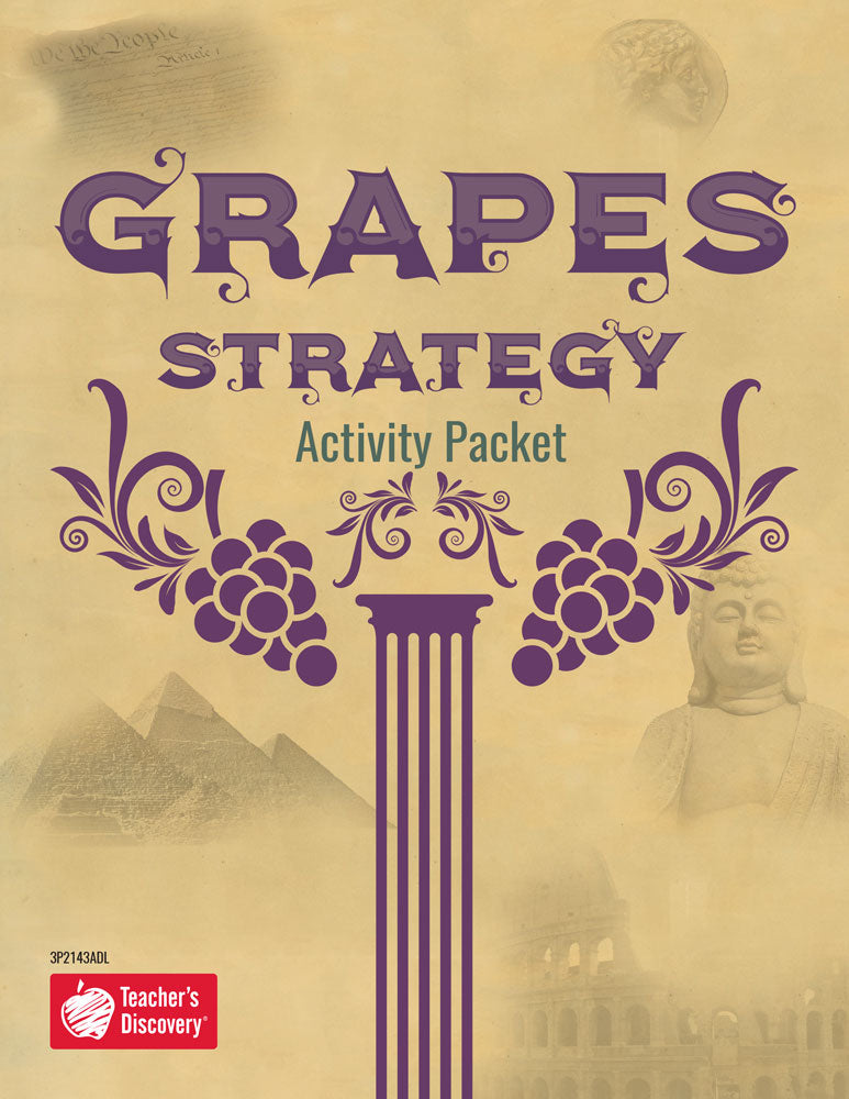 Excellent for independent learning, the 22-page activity packet download provides over 20 activities and research topics. Students practice applying GRAPES to different historical facts, create a GRAPES foldable, and follow a writing process to create a formal paper connecting any region to the GRAPES factors.