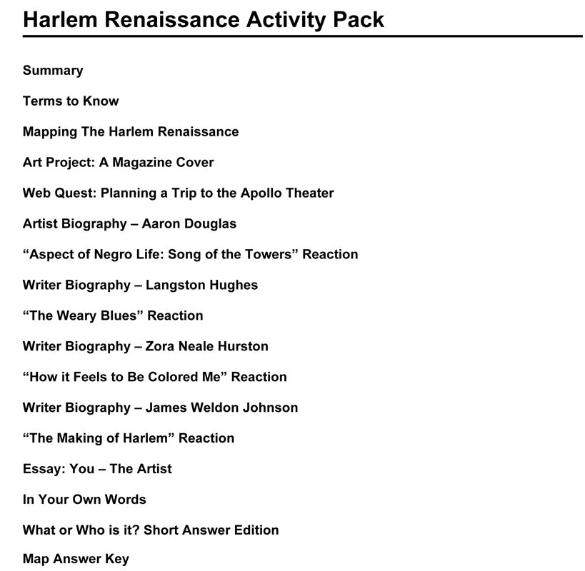 Harlem Renaissance Activity Packet Download - Harlem Renaissance Activity Pack Download is backordered and will ship as soon as it is back in stock.