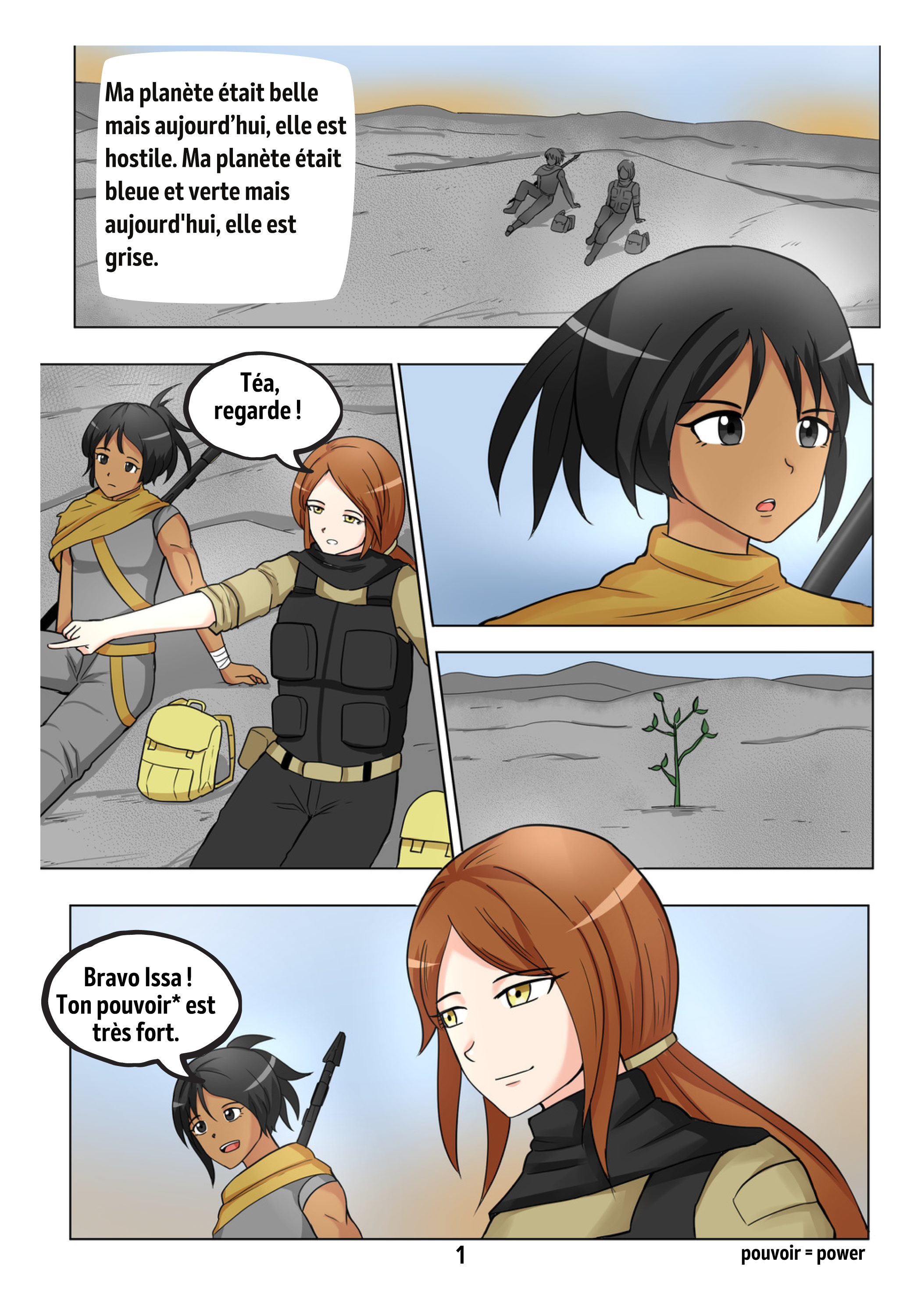Téa and her big sister Issa live in a hostile desert. Not only is it hard to find water, but the Racas, a ruthless group of bandits, are also roaming the desert in search of this precious liquid. Several years ago, the Racas kidnapped the girls' mother because she has a special power: the ability to sense water. Téa, determined to find her mother, embarks on an adventure full of dangerous twists and turns. This graphic novel is 20 pages long, with only 100 headwords and lots of cognates. Though the language is fairly simple, the story is remarkably complex and engaging, and supported by beautiful illustrations. An ideal book for Novice learners.