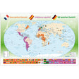 Your students will be amazed at how many countries speak their new language. This map includes areas that speak Spanish, French or German as their official language as well as areas where these languages are prevalent. Map is illustrated and color-coded for easy reference. Border features flags from many different countries. Measures 36 x 24 inches and is laminated. ©2012. English. Middle School, High School.