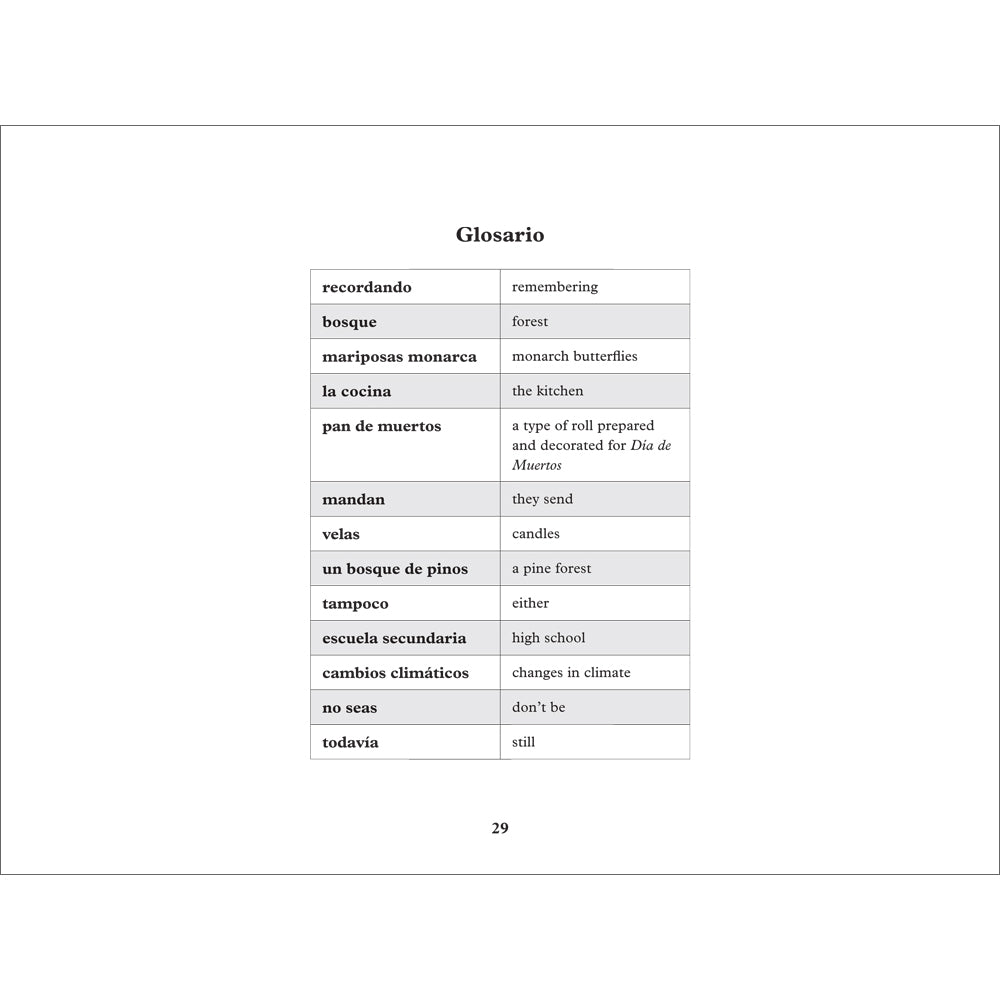 Las mariposas vienen de visita Spanish Level 2 Student Reader targets important themes and cultural elements, including Day of the Dead, the environment, family structure, and immigration. It includes full-color illustrations and a glossary.