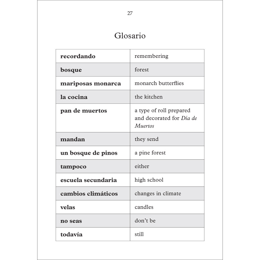 Every fall, millions of monarch butterflies fly south, usually arriving in the area of Michoacán in time for Día de Muertos. This year, María Elena and her grandmother don’t see the monarchs as they prepare for the Día de Muertos celebrations. Will the monarchs arrive on time, and will María Elena’s parents ever return from the north, as well?