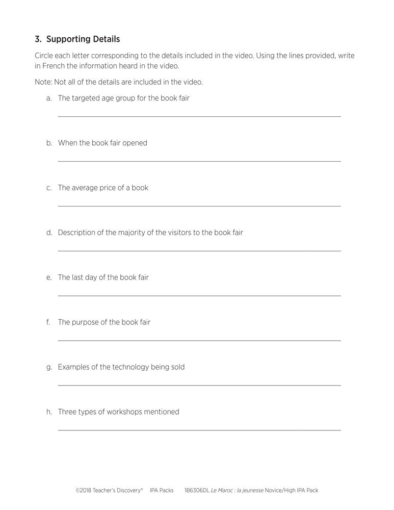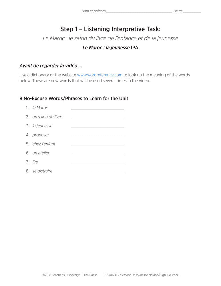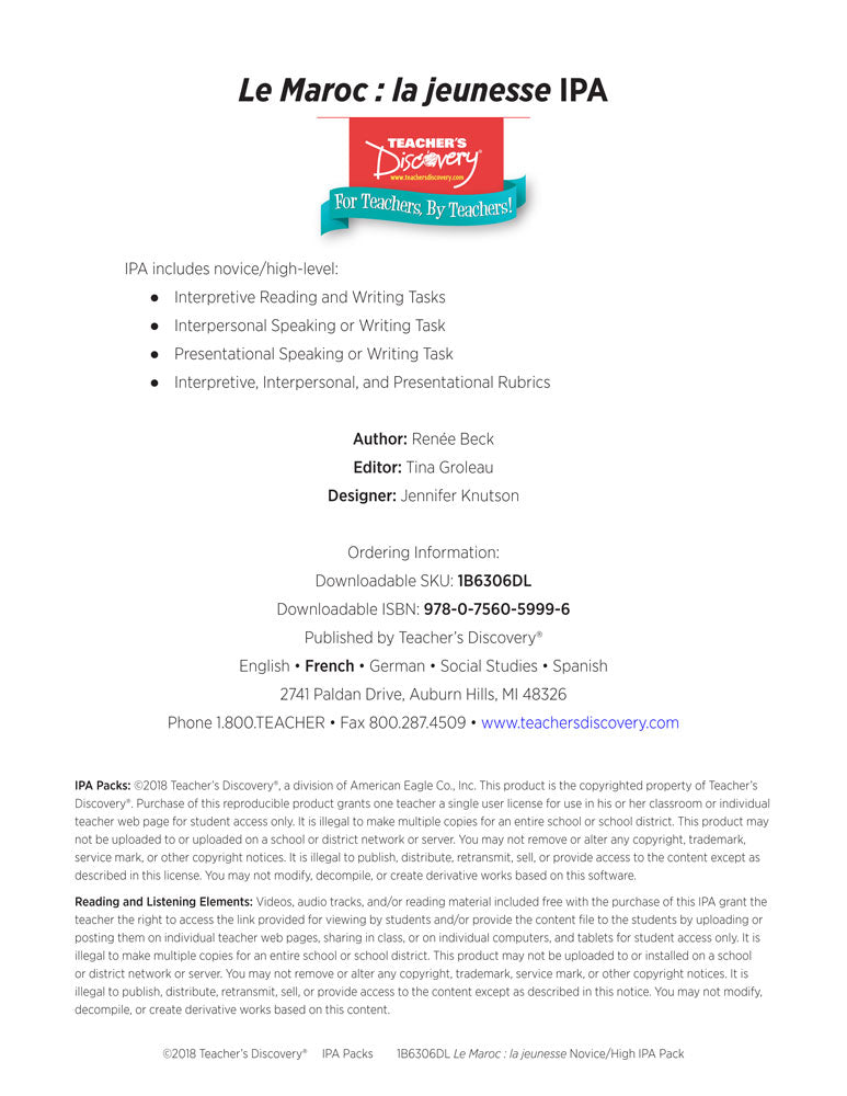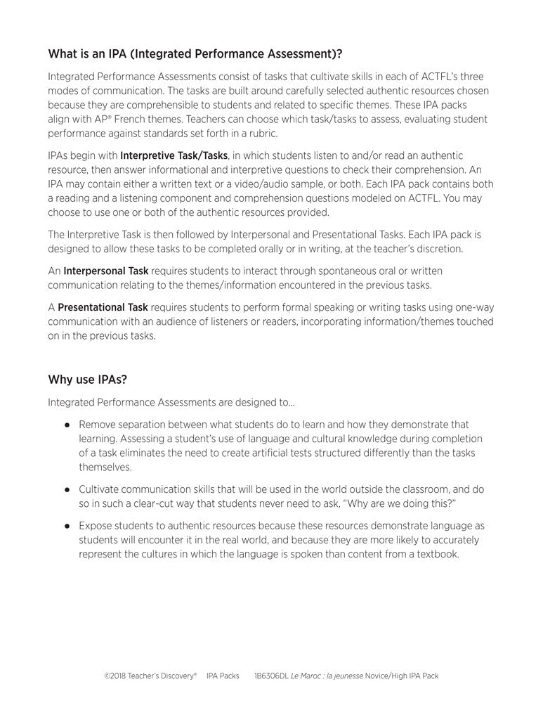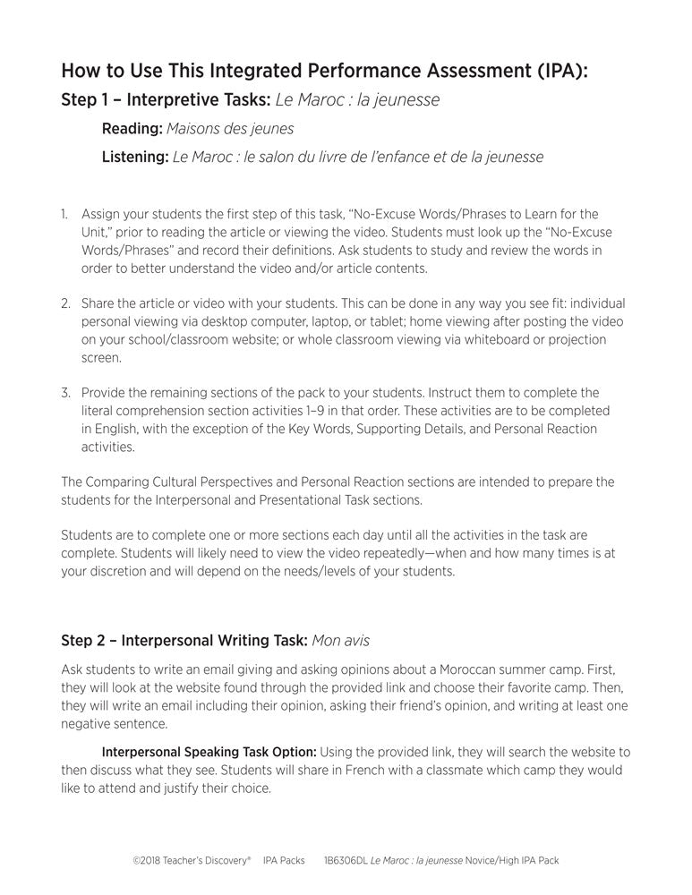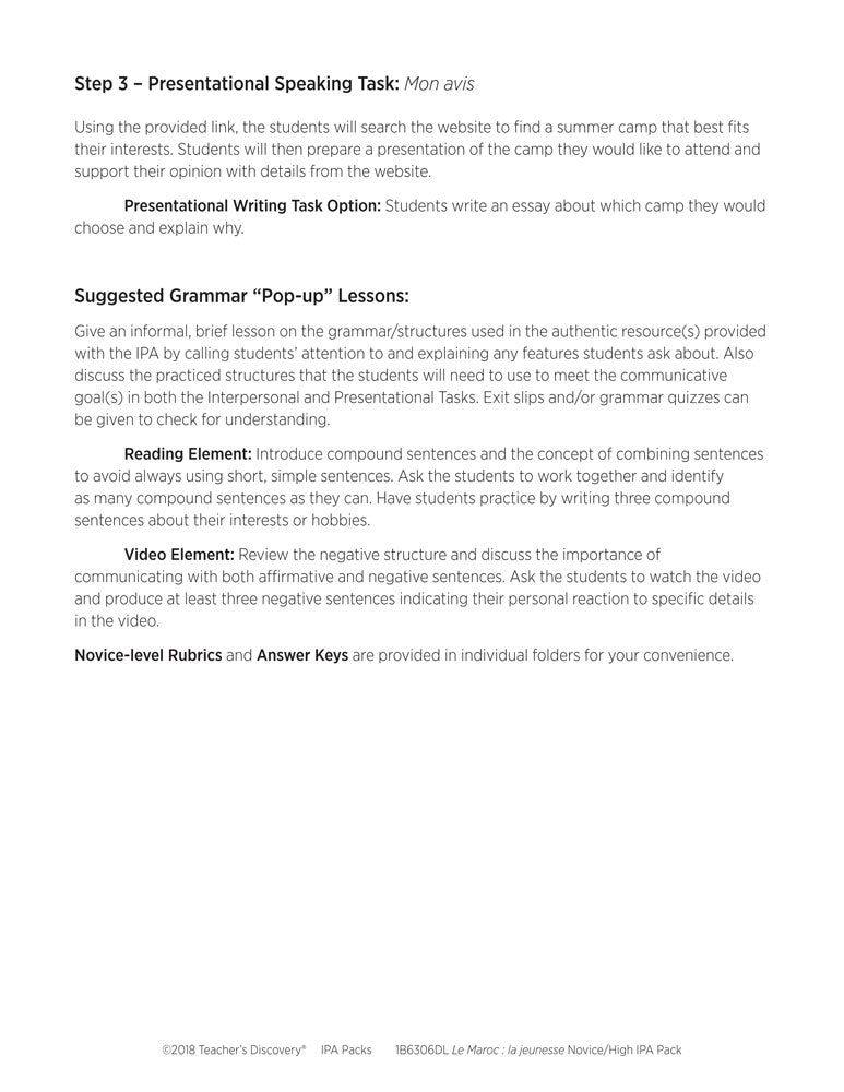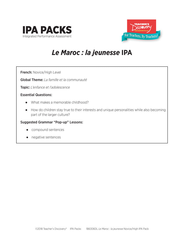 Le Maroc : la jeunesse Novice-High French IPA Pack - DIGITAL RESOURCE DOWNLOAD