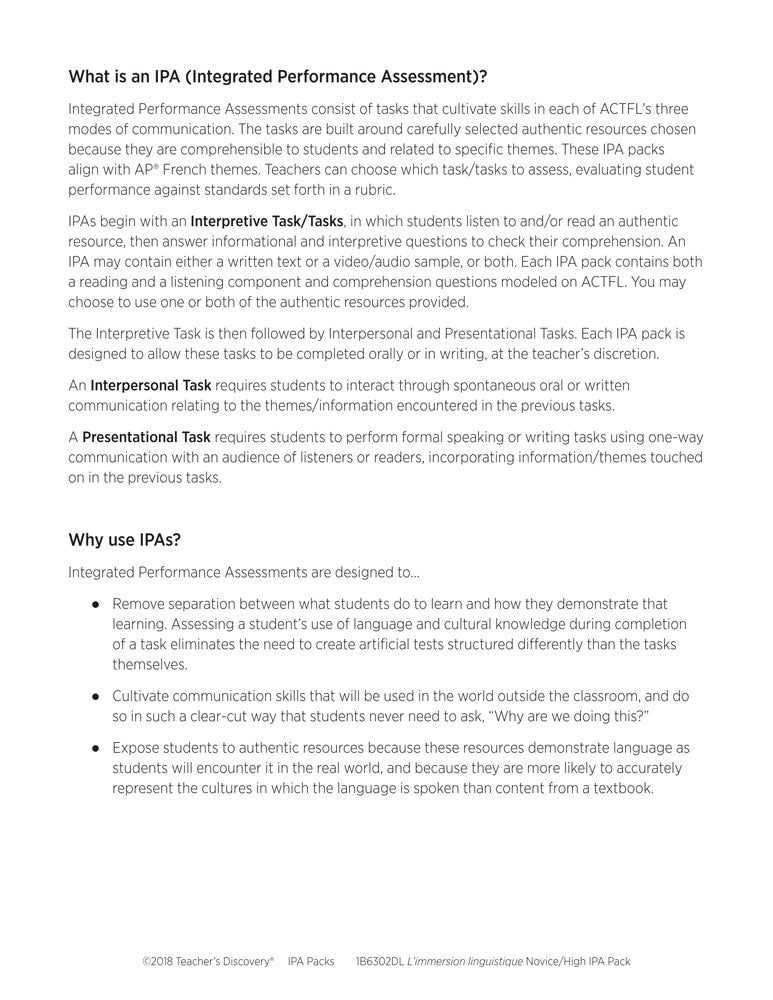 L'immersion linguistique Novice/High French IPA Pack—DOWNLOAD THIS FLEXIBLE DIGITAL RESOURCE TODAY!