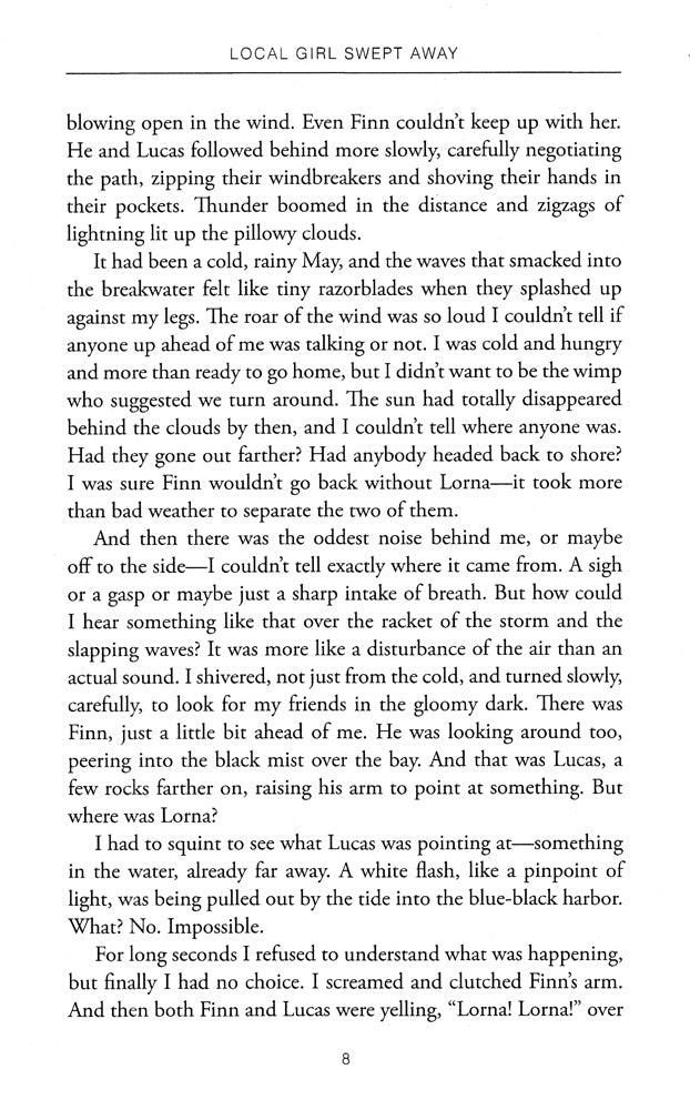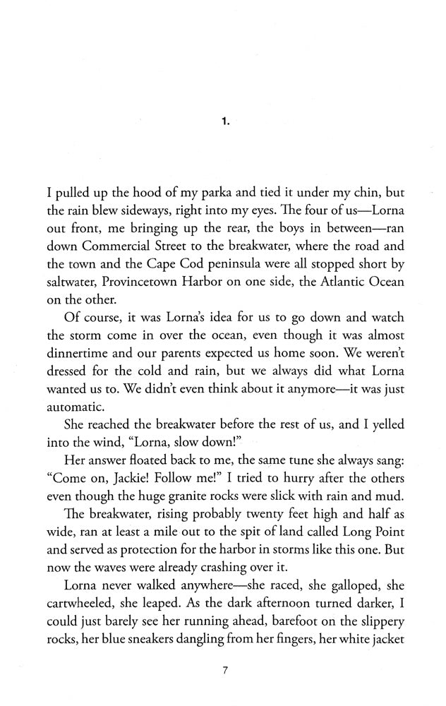 Stark, uncompromising, beautiful—this describes the tourist town of Cape Cod, MA, where a young woman's body remains to be found. Three friends struggle to come to terms with their missing leader and with the secrets each endeavor to hide. 17-year-old Jackie's struggle to overcome her grief and confusion after her best friend is carried out to sea during a storm.