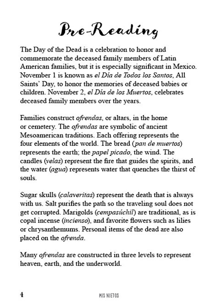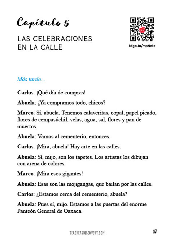 Abuela Inés and her nietos decorate an ofrenda in the local cemetery to commemorate deceased family members. Carlos and Marco discover some family secrets from the past which make for a delightful twist at the end.