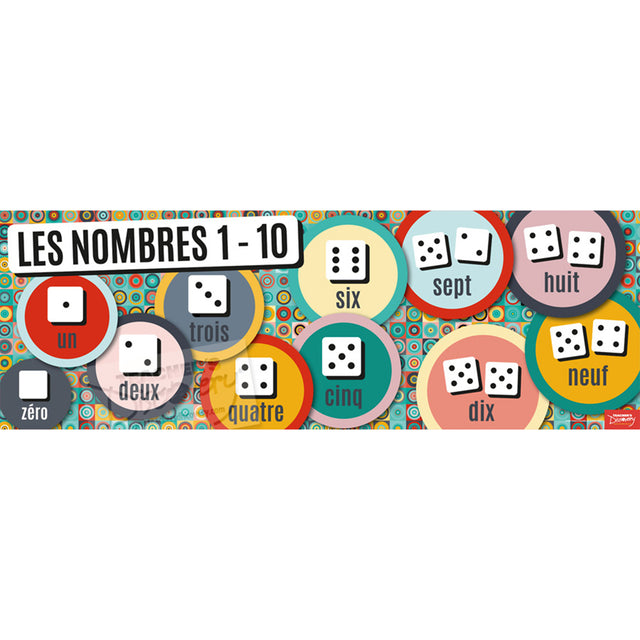 Connect the French word directly with a quantity in students' heads - this poster doesn't use numerals! 13 x 38 inches. Laminated.