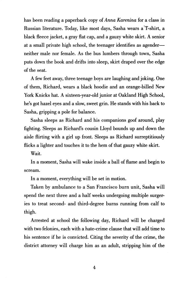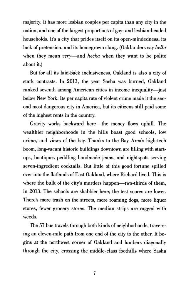 If it weren't for the 57 bus, Sasha and Richard never would have met. Both were high school students from Oakland, California, one of the most diverse cities in the country, but they inhabited different worlds. Sasha, a white teen, lived in the middle-class foothills and attended a small private school. Richard, a Black teen, lived in the crime-plagued flatlands and attended a large public one. Each day, their paths overlapped for a mere eight minutes. But one afternoon on the bus ride home from school, a single reckless act left Sasha severely burned, and Richard charged with two hate crimes and facing life imprisonment. The case garnered international attention, thrusting both teenagers into the spotlight.