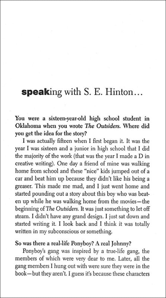 Author: S. E. Hinton. ©1995,180 pages, paperback, 4 x 7 inches.