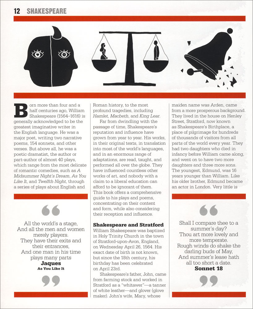 Packed full of infographics, inspirational quotes, character guides, and more bonus material that brings the Bard to life, from Shakespeare plays like Twelfth Night, Julius Caesar, Hamlet, and As You Like It, to his sonnets, and even obscure lost works.