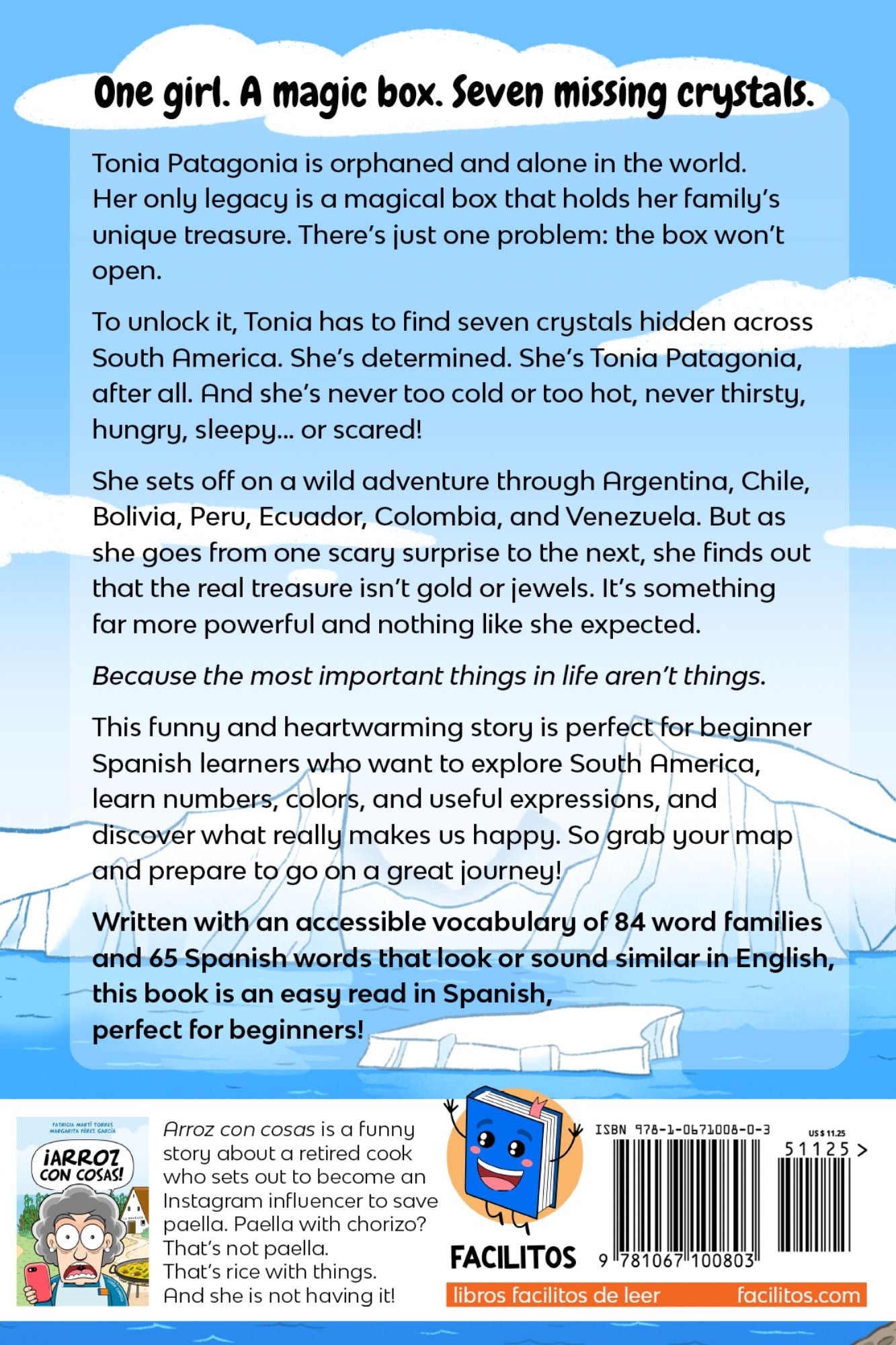 To unlock it, she must find seven crystals hidden across South America. She is determined. She is Tonia Patagonia, after all. And she is never cold, hot, thirsty, hungry, sleepy… or scared.